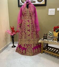 Grand rani pink kaftan gown with heavy gold zari work | luxury wedding & party dress