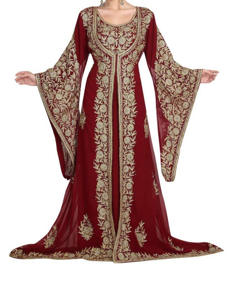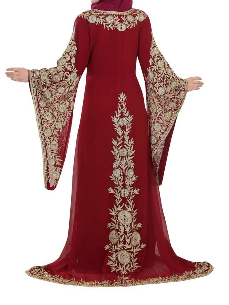| Product Name | Red Georgette Moroccan Islamic Dubai Kaftan Farasha Aari And Stone Work Dress | |