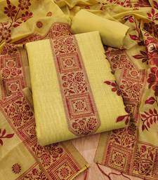 Yellow muga cotton jamdani suit dress material with dupatta unstitched