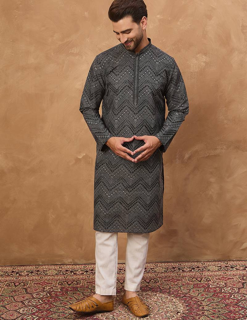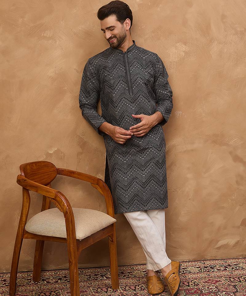| Product Name | Men Black Silk Blend Geometric Printed Straight Kurta | |
