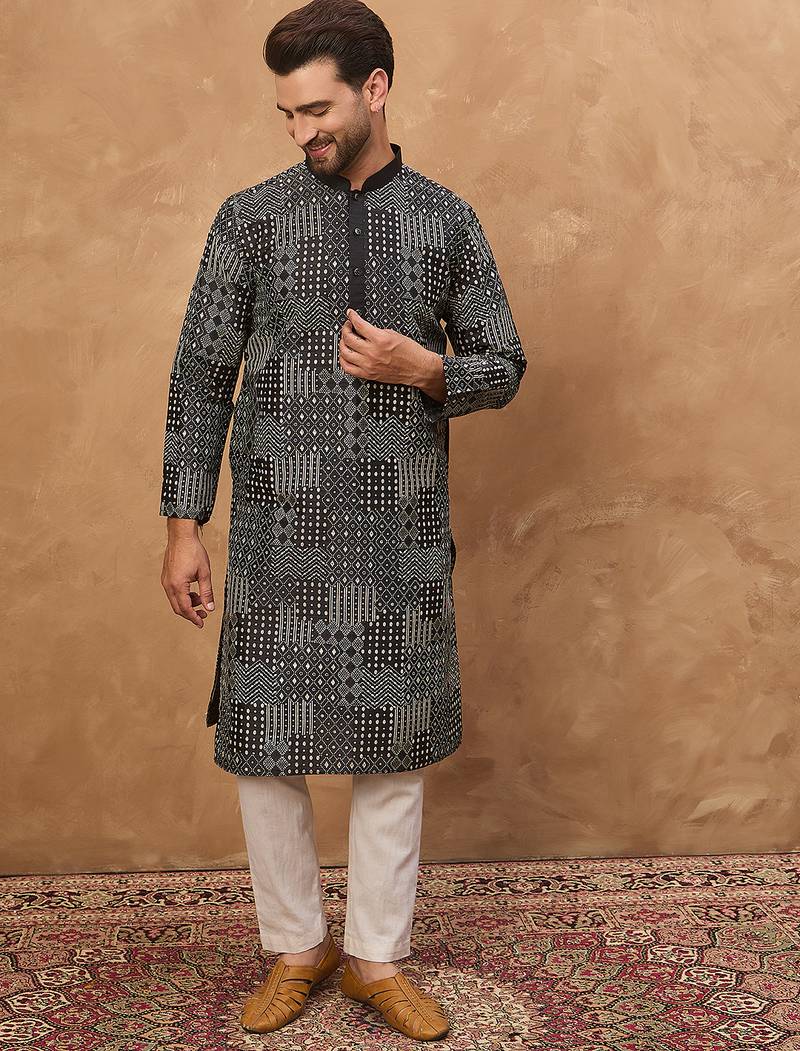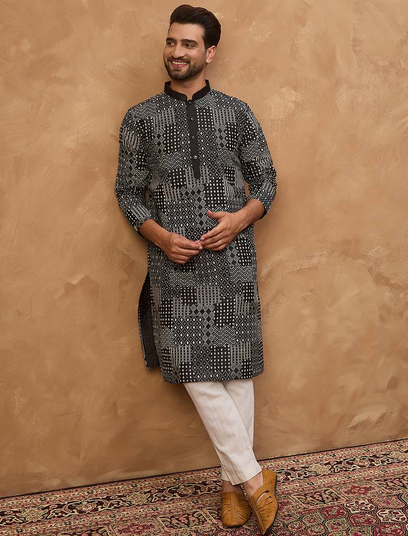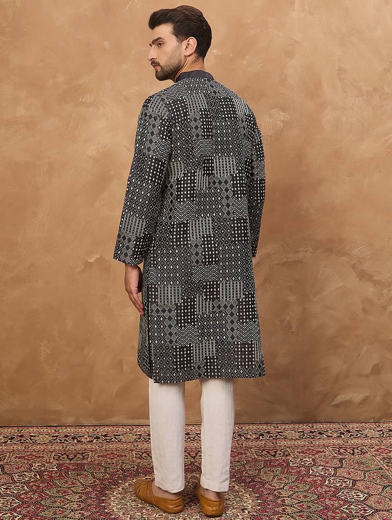 | Product Name | Men Black Silk Blend Geometric Printed Straight Kurta | |