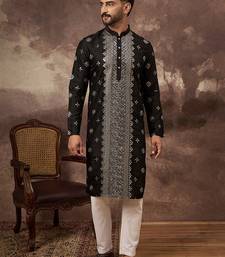 | Product Name | Men Black Silk Blend Solid Embroidered Straight Kurta | |