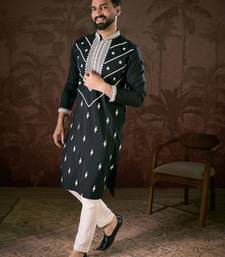 | Product Name | Men Black Silk Blend Solid Embroidered Straight Kurta | |