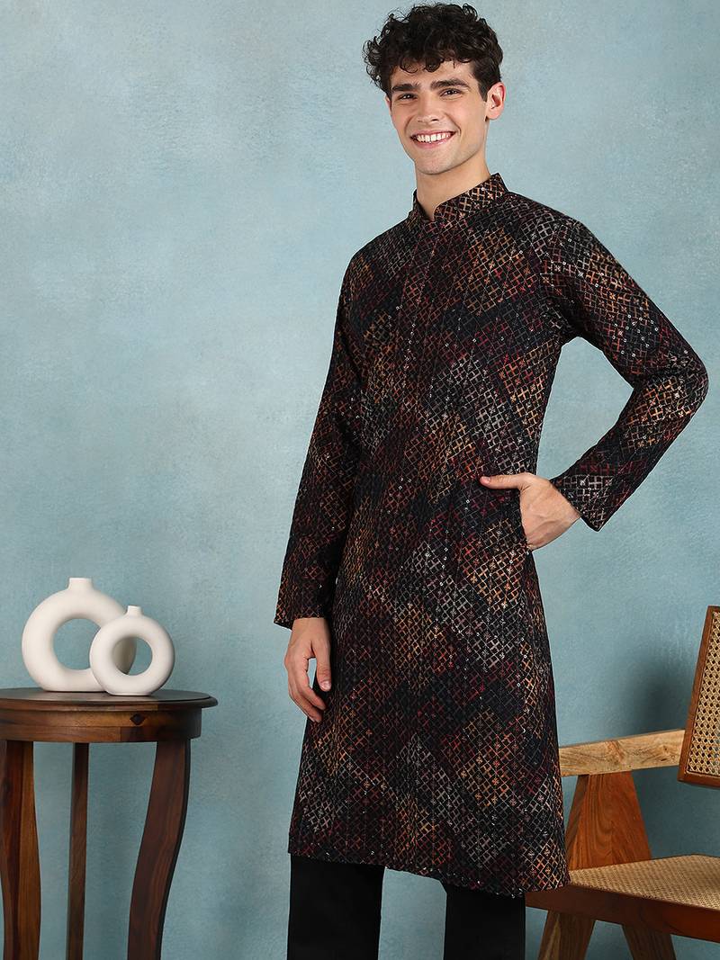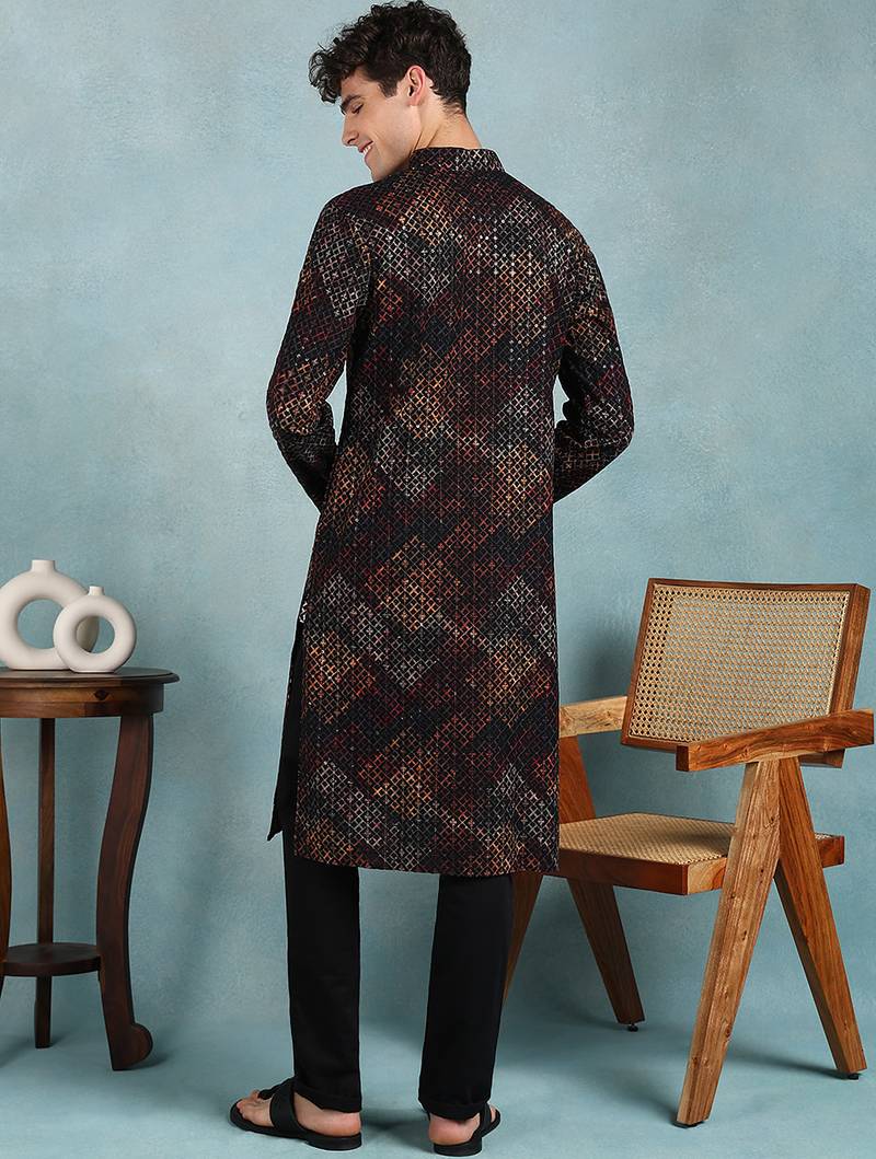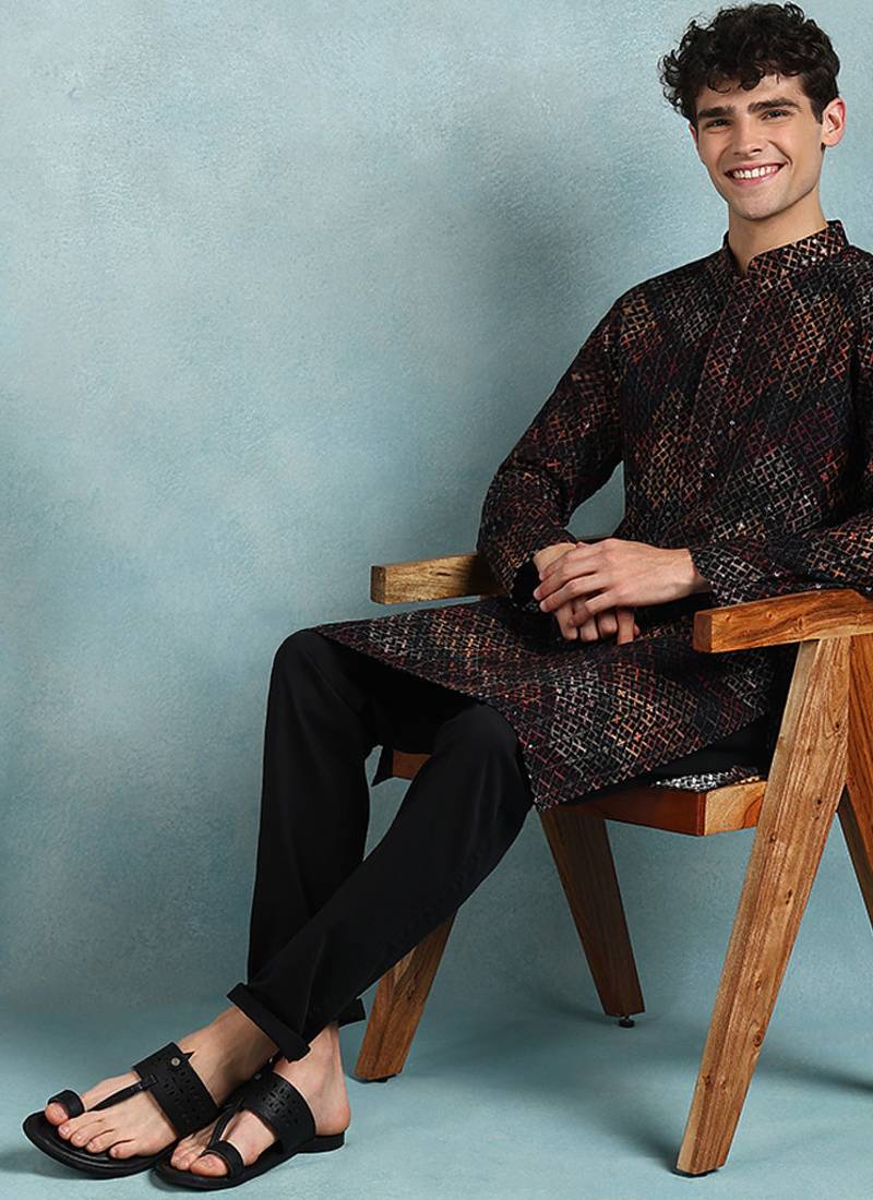 | Product Name | Men Black Viscose Rayon Ethnic Motifs Embroidered Straight Kurta | |