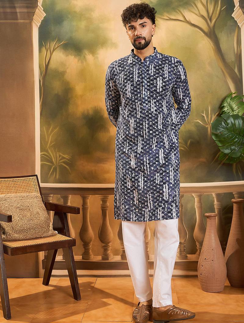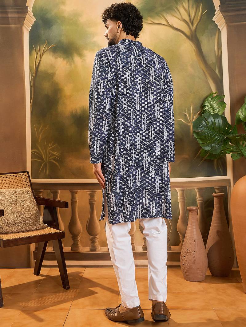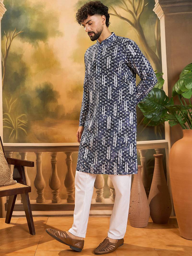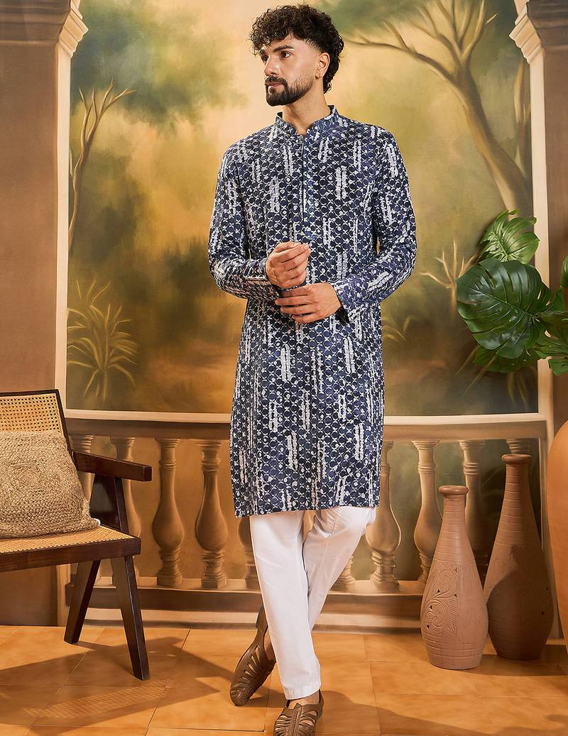 | Product Name | Men Blue Viscose Rayon Shibori Embroidered Straight Kurta | |