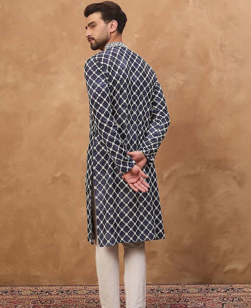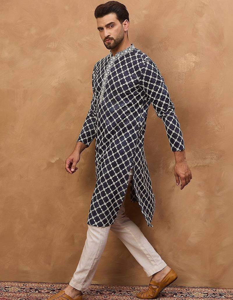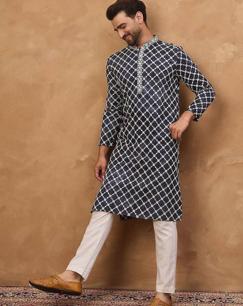 | Product Name | Men Blue Viscose Rayon Shibori Embroidered Straight Kurta With Pant Set | |