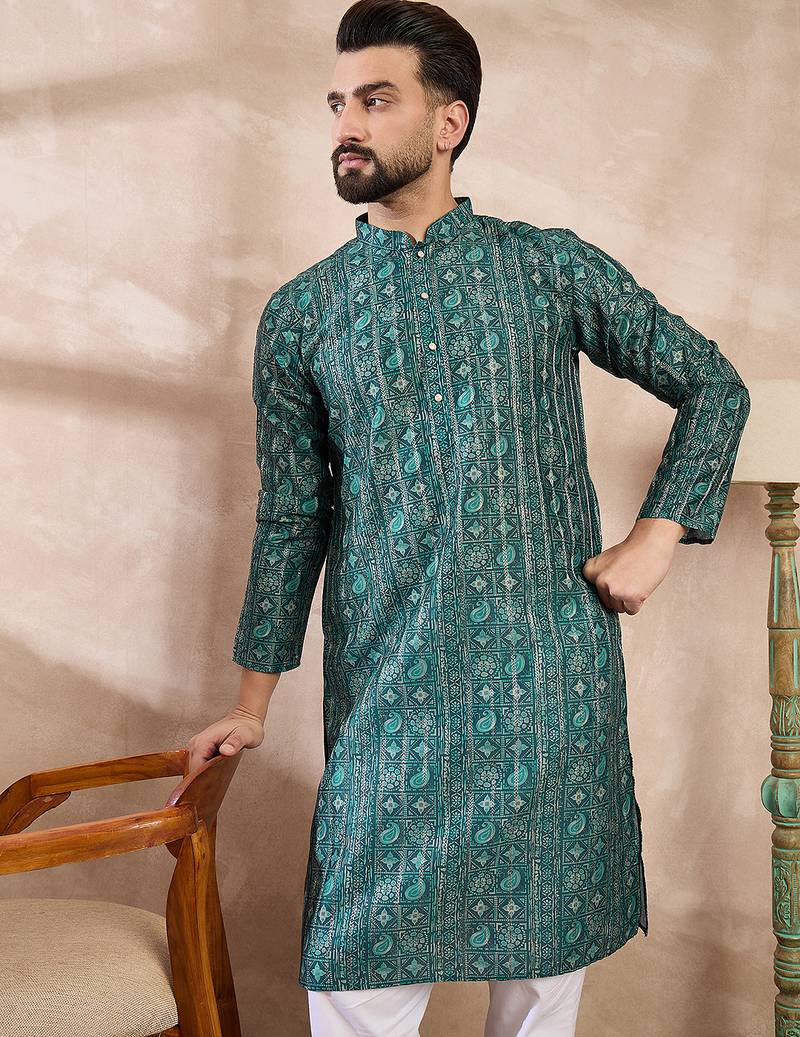 | Product Name | Men Green Silk Blend Ethnic Motifs Printed Straight Kurta | |