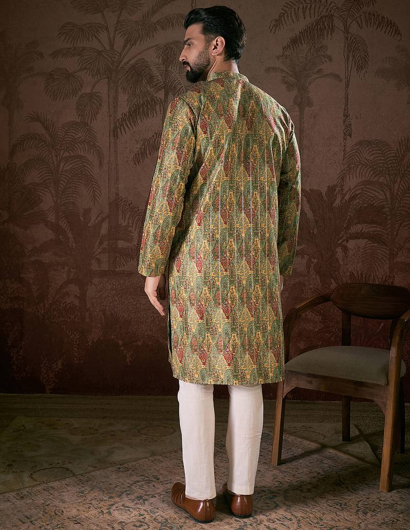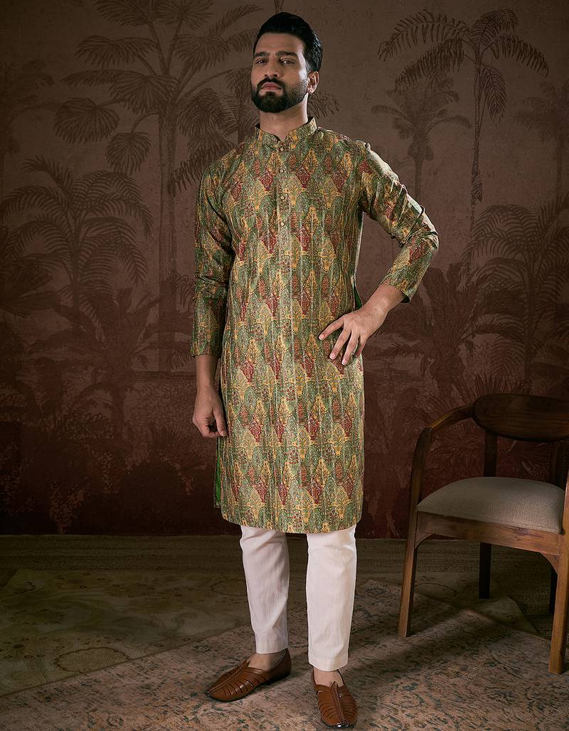 | Product Name | Men Green Silk Blend Floral Printed Straight Kurta | |