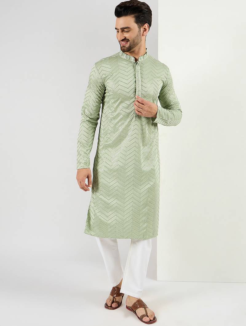 | Product Name | Men Green Viscose Rayon Solid Embroidered Straight Kurta | |