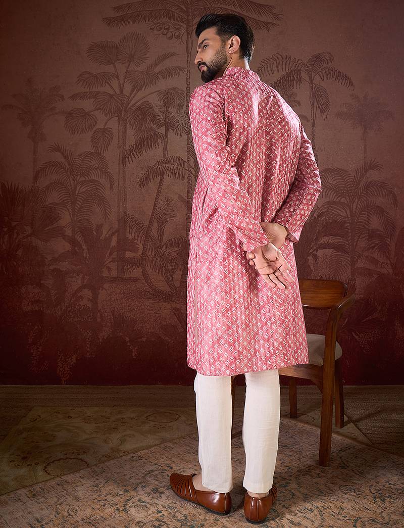 | Product Name | Men Pink Silk Blend Ethnic Motifs Printed Straight Kurta | |