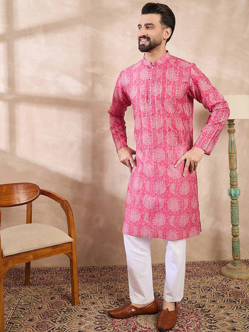 | Product Name | Men Pink Silk Blend Floral Printed Straight Kurta With Trouser | |