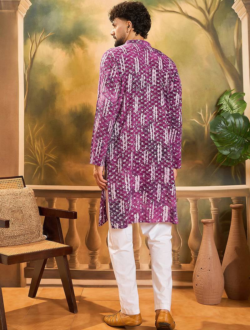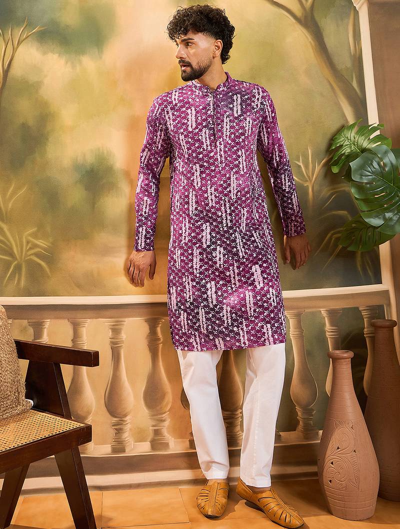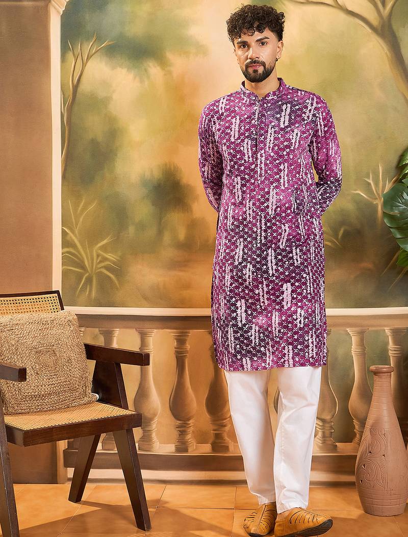 | Product Name | Men Purple Viscose Rayon Shibori Embroidered Straight Kurta | |