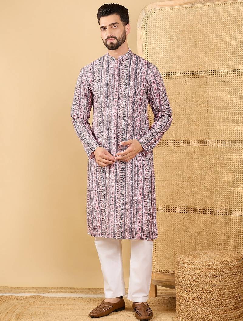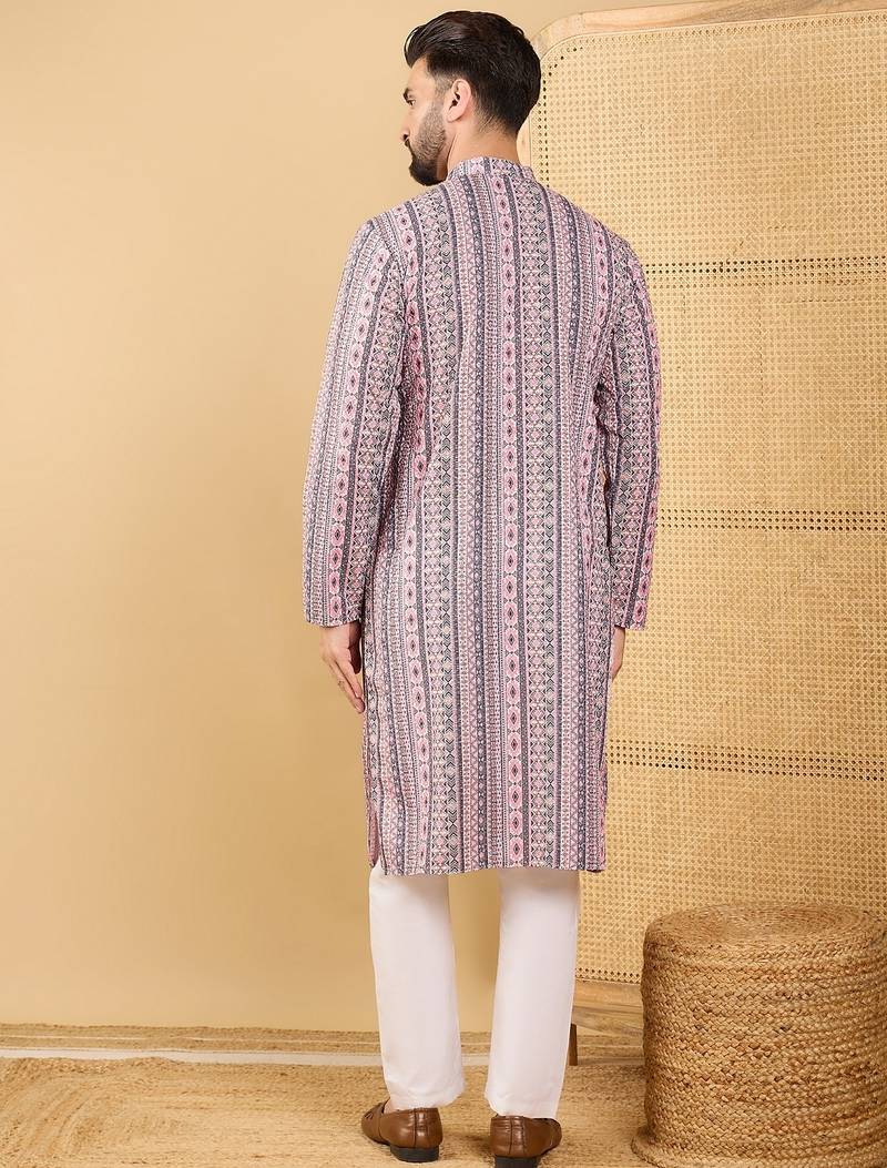 | Product Name | Men's White Viscose Rayon Geometric Embroidered Straight Chikankari Kurta | |