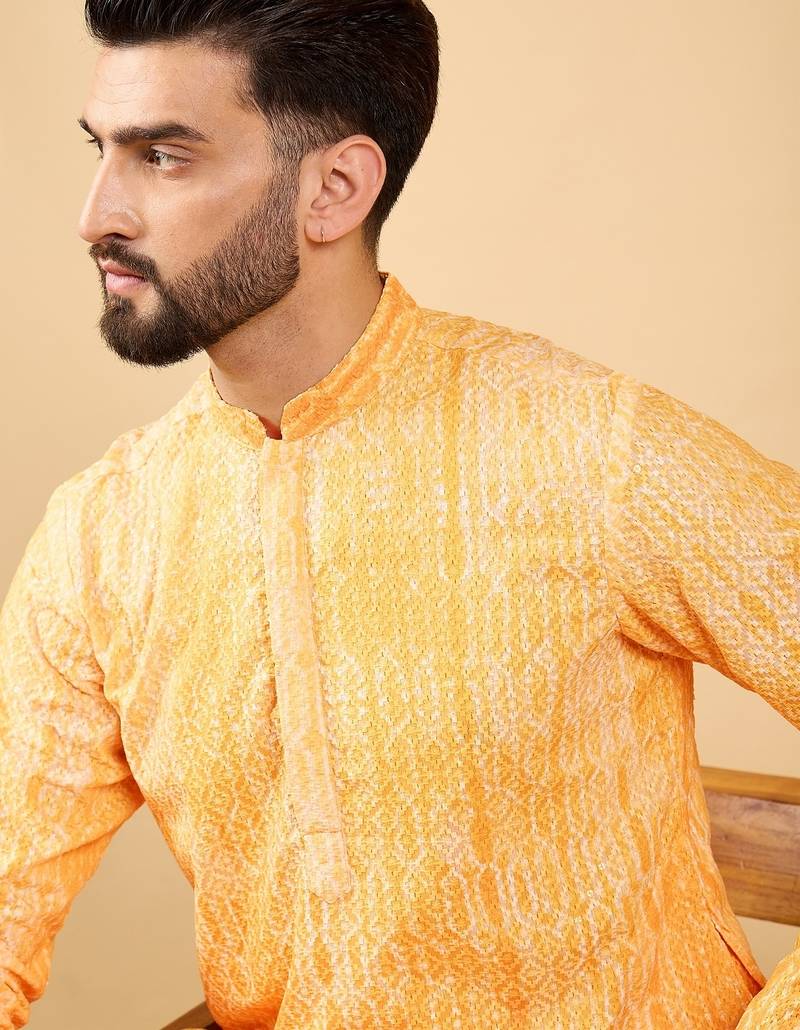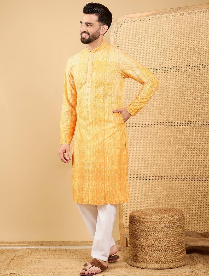 | Product Name | Men's Yellow Viscose Rayon Abstract Embroidered Straight Chikankari Kurta | |