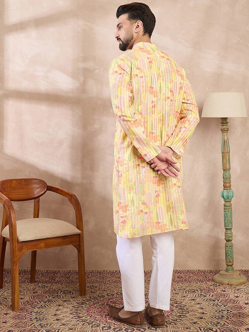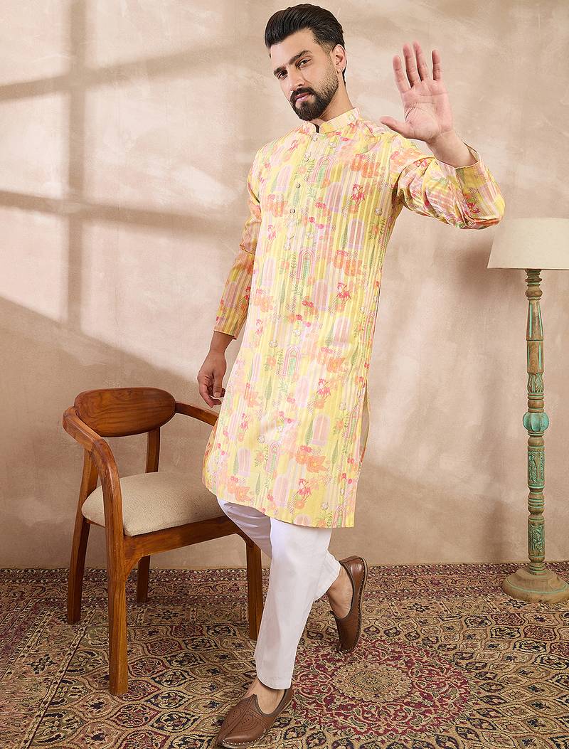 | Product Name | Men Yellow Silk Blend Abstract Printed Straight Kurta With Trouser | |