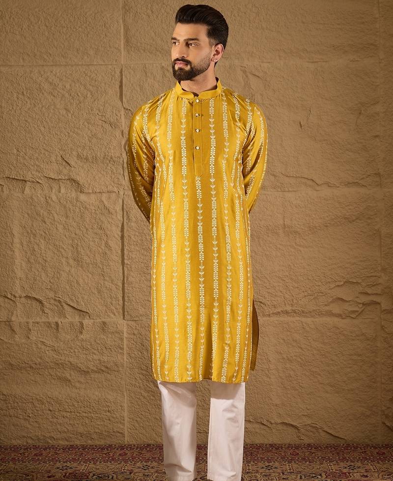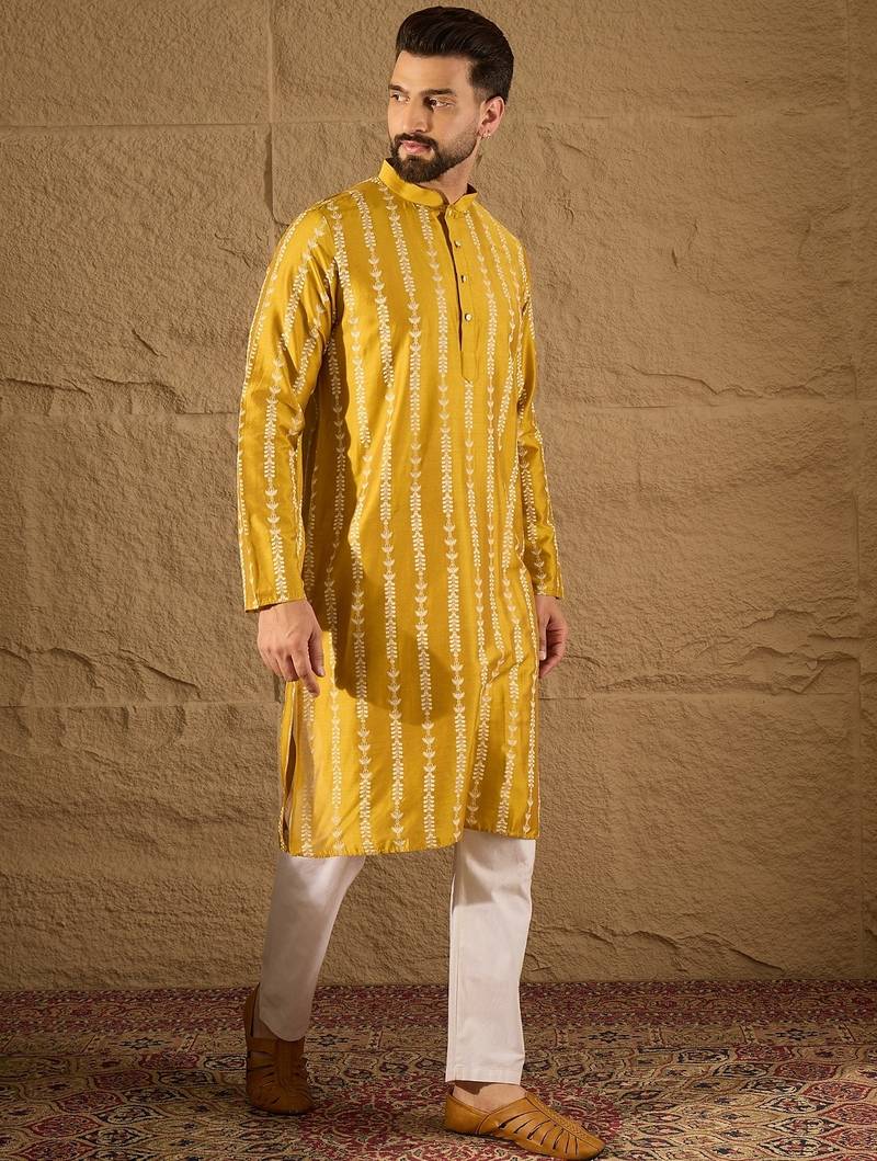 | Product Name | Men Yellow Viscose Rayon Ethnic Motifs Printed Straight Kurta With Trousers | |