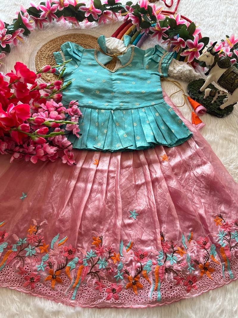 | Product Name | Girls Skyblue Tissue Silk Choli With Pink Floral Embroidered Lehenga Set | |