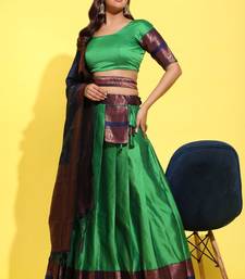 Beautiful south indian style semi-stitched half saree with blouse and banarasi dupatta for women