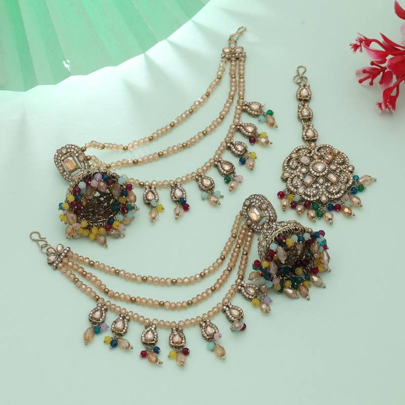 | Product Name | Multi Color Big Jhumka Kundan Earrings Tikka Set Festive | |