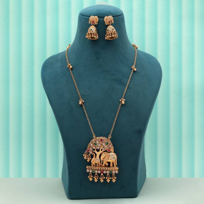 | Product Name | Multi Color Elephant Design Meena Work Matte Gold Necklace Set | |