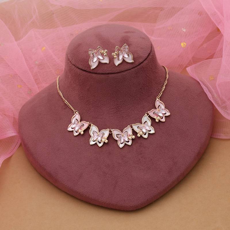 | Product Name | Pink Color Butterfly Design Anti Tarnish Necklace Set Stylish Fashion | |