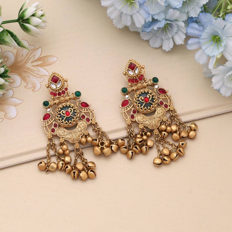 | Product Name | Rani & Green Color Matte Gold Earrings | |