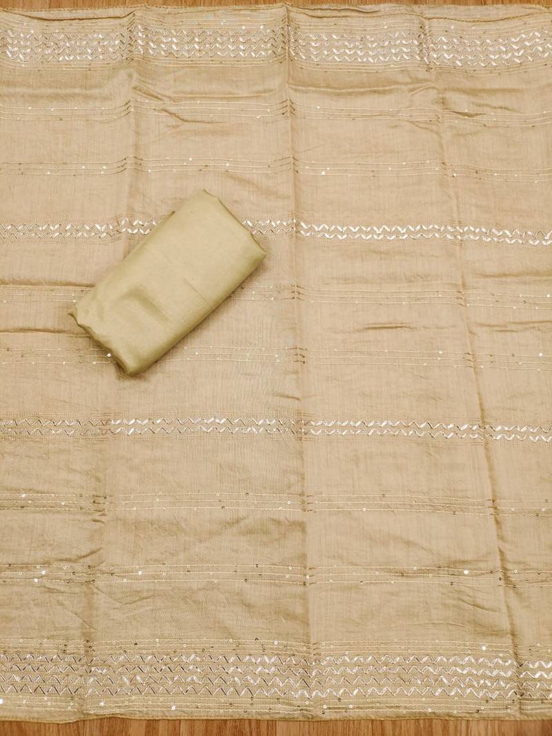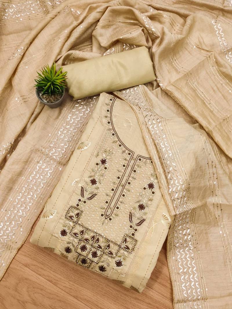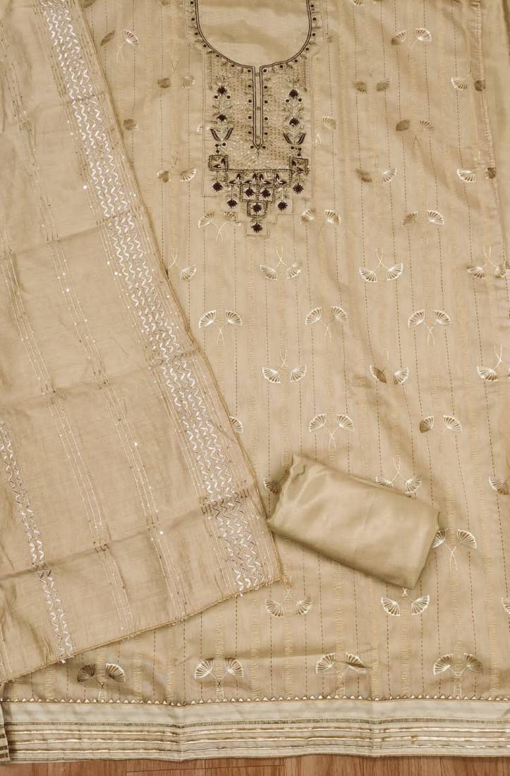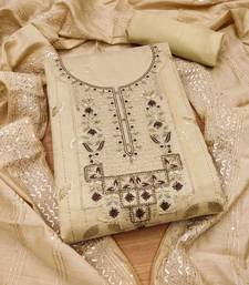 Beige hand embroidery chanderi silk salwar unstitched