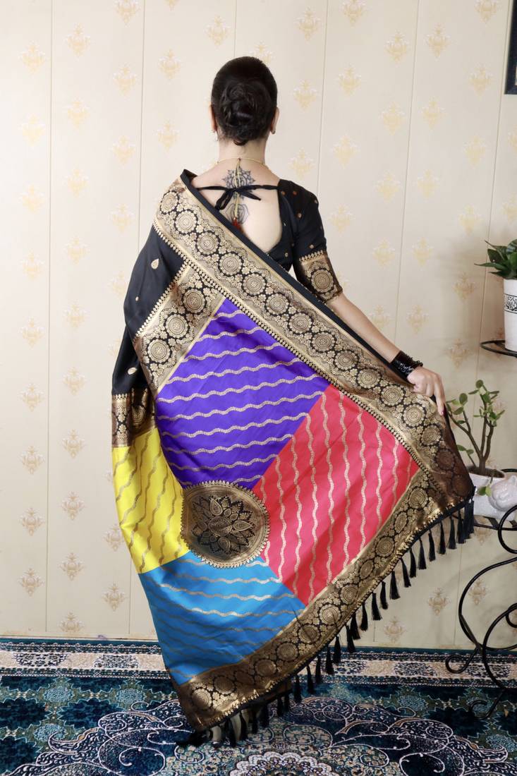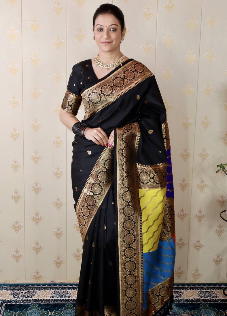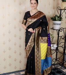 Black banarasi silk zari weaving saree with matching blouse piece