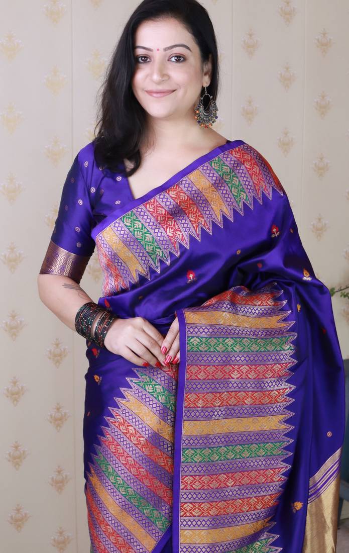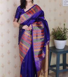Blue soft silk floral meenakari zari weaving saree with matching blouse piece