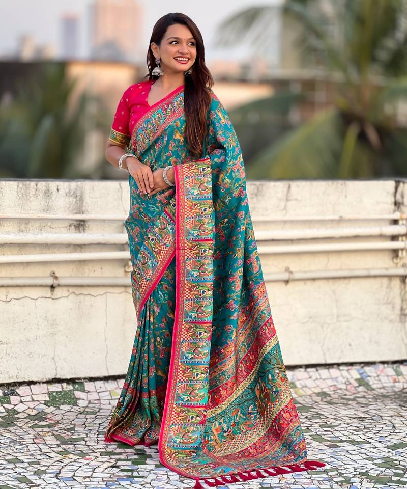 | Product Description | Pure Viscose Silk Sarees With Meenakari Zari Jaal Position Printed Motifs All Over The Body Having Rich Woven Position Printed Traditional Pallu, Traditional Border And Paired With Contrast Brocade Blouse Same As Shown. |