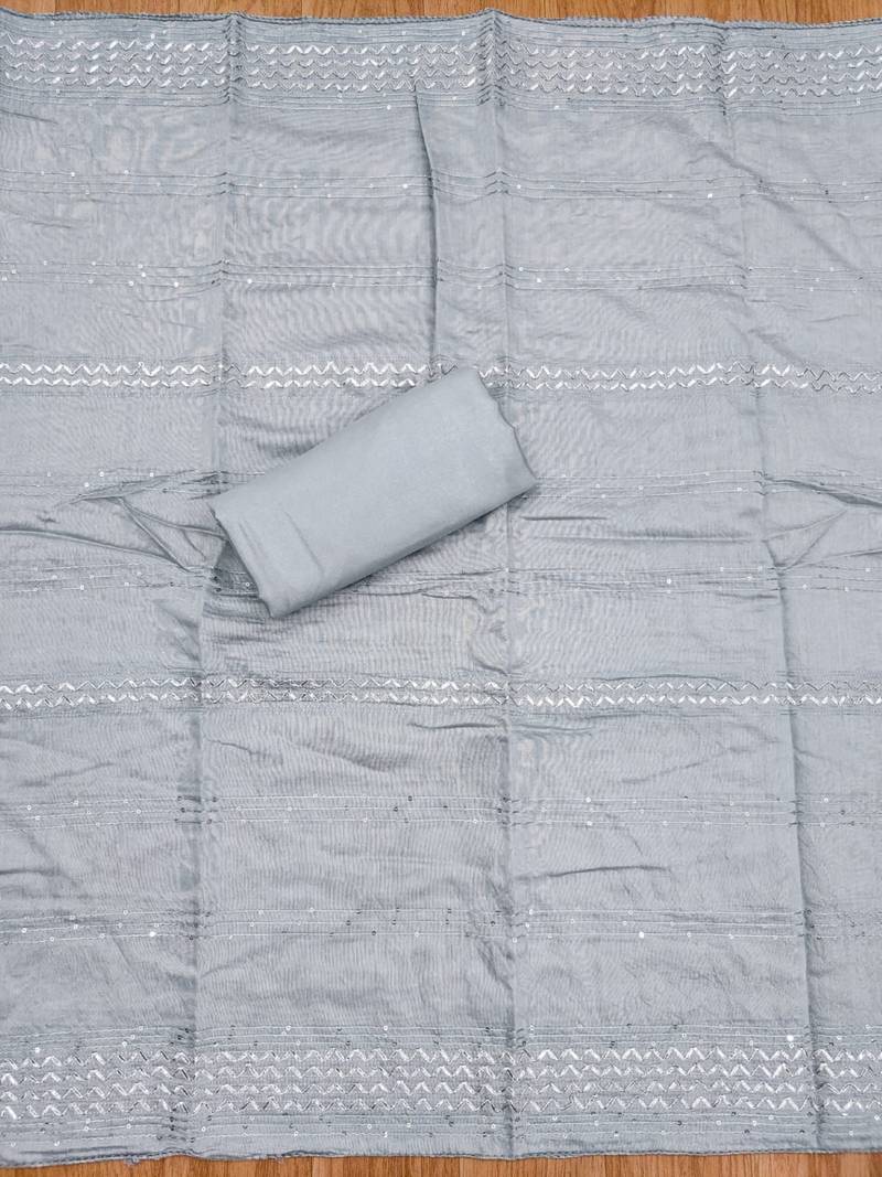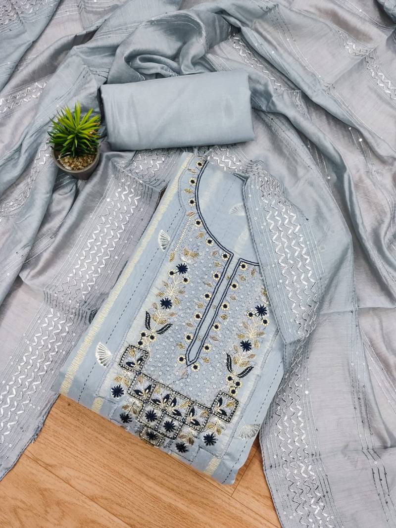 Grey hand embroidery chanderi silk salwar unstitched