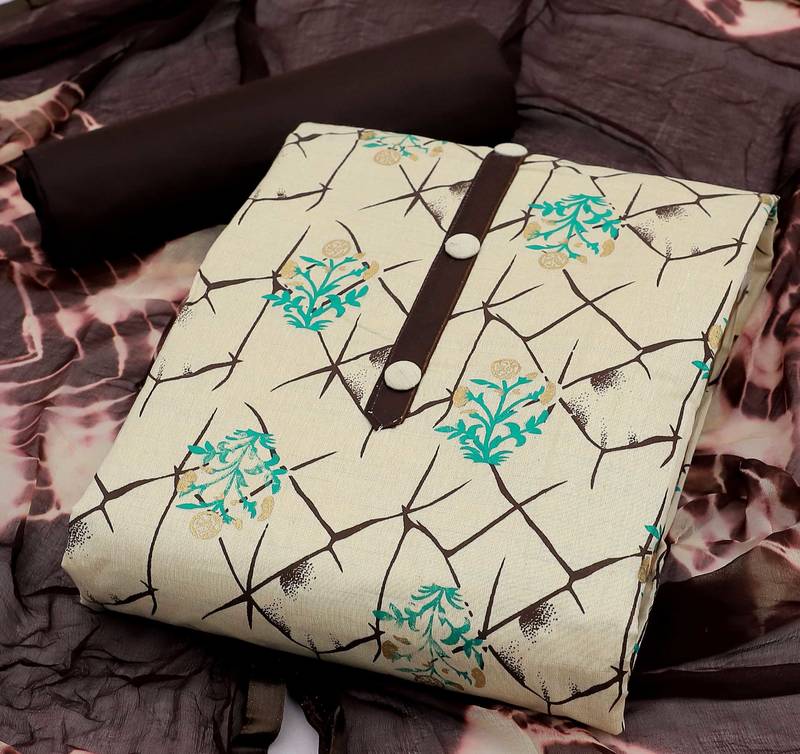 | Product Name | Khadi Cotton Top, Heavy Cotton Bottom, And Najmeen Saboori Print Dupatta Dress Material | |