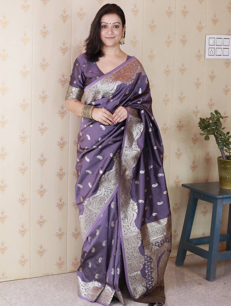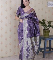 Lavender banarasi silk zari woven saree with matching blouse piece