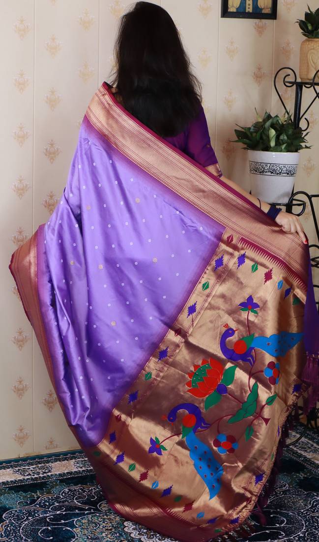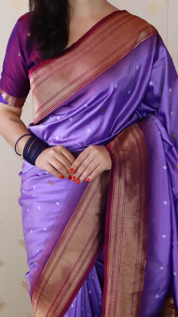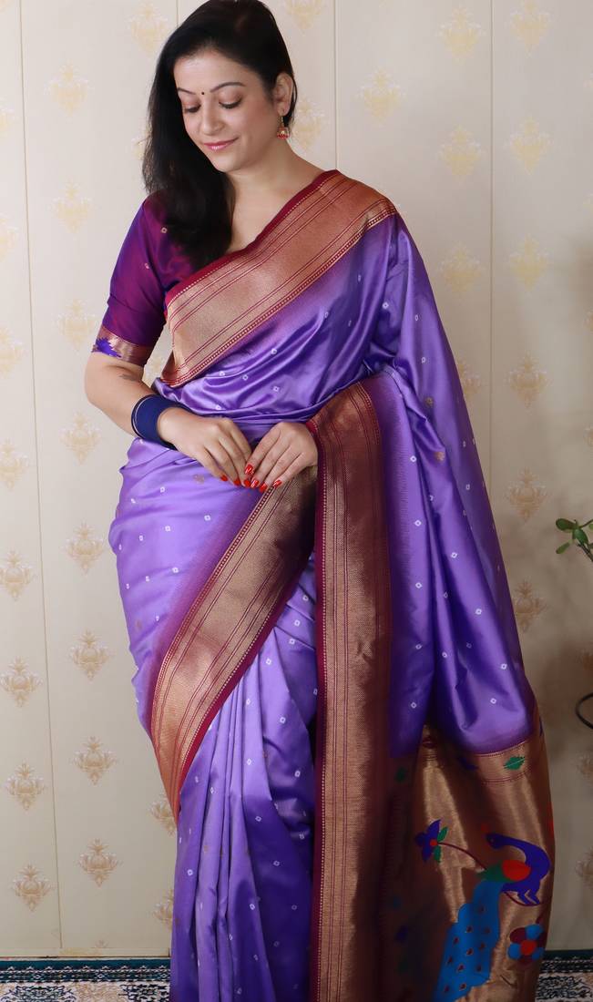 Lavender paithani silk bandhani zari weaving saree with contrast blouse piece