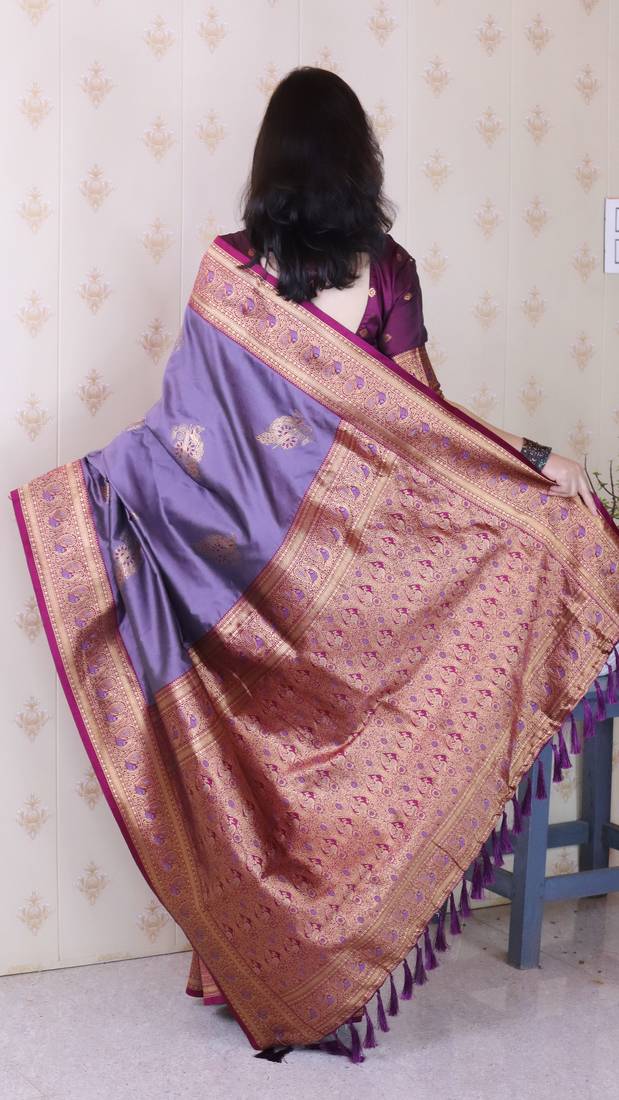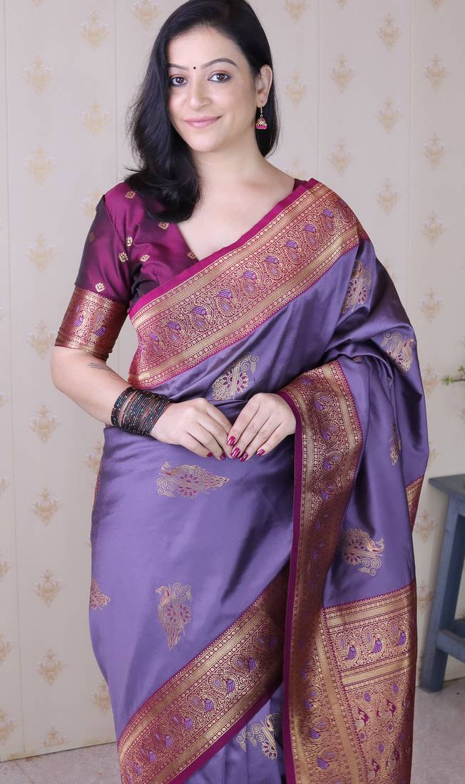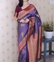 Lavender soft silk zari weaving saree with contrast blouse piece