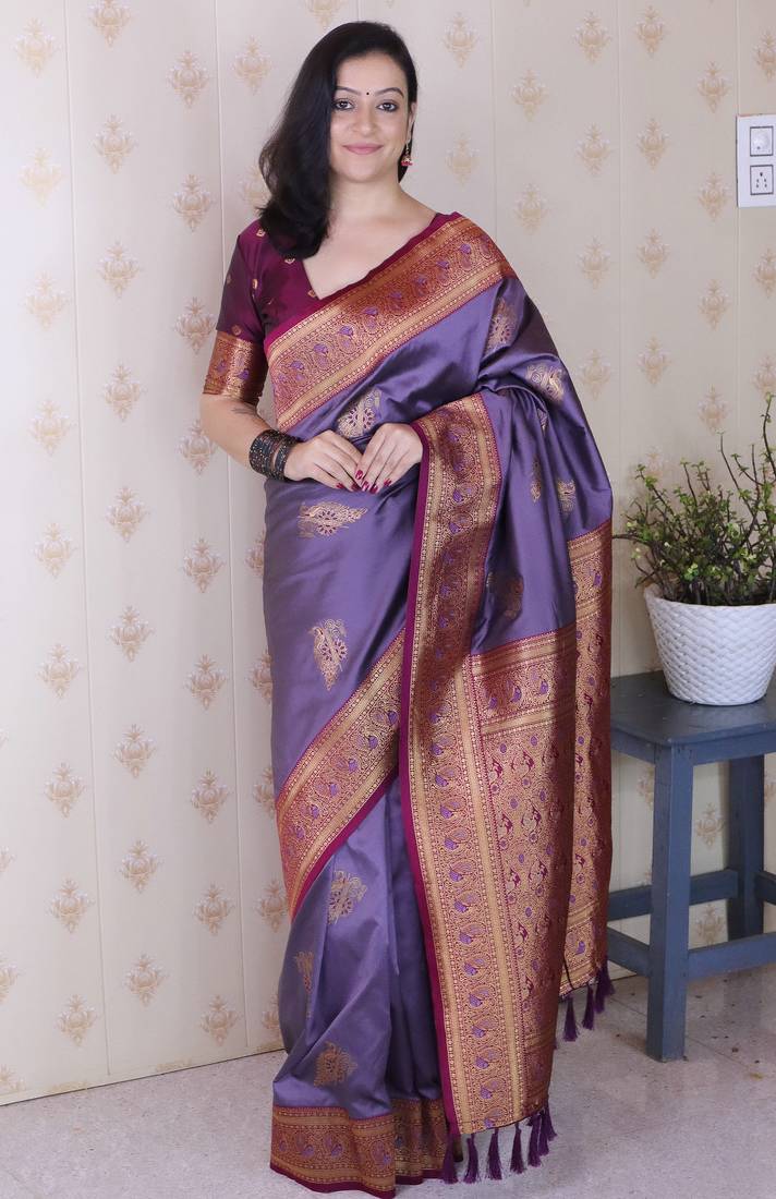 | Product Name | Lavender Soft Silk Zari Weaving Saree With Contrast Blouse Piece | |