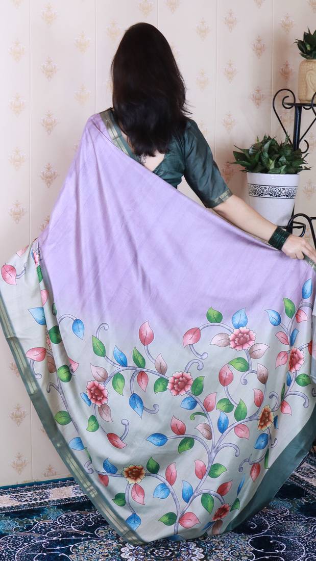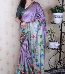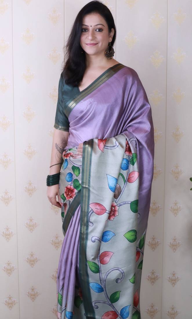| Product Name | Lavender Tussar Silk Kalamkari Print Zari Woven Border Saree With Contrast Blouse Piece | |