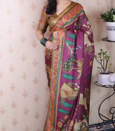 | Product Name | Lavender Tussar Silk Printed With Zari Border Saree And Contrast Blouse Piece | |