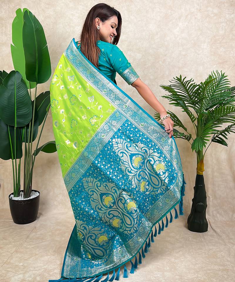 | Product Name | Light Green Banarasi Silk Zari Woven Saree With Contrast Blouse Piece | |