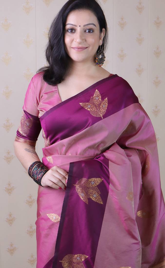 Mauve soft silk zari weaving saree with matching blouse piece