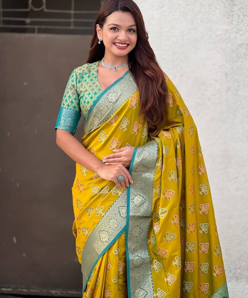 | Product Name | Mustard Patola Silk Saree Meenakari Weaves & Zari Pallu With Contrast Blouse Piece | |