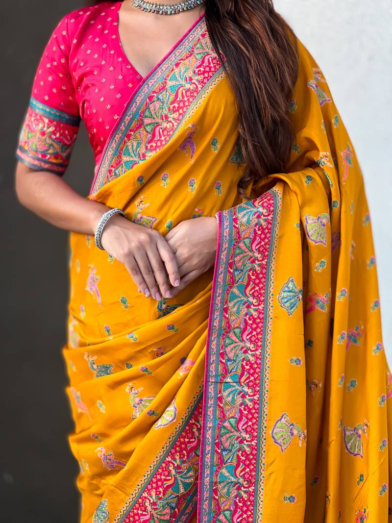 | • | Saree | : | Color- Mustard / Fabric- Silk Blend |