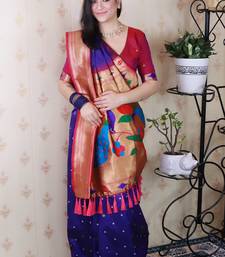Navy blue paithani silk bandhani zari weaving saree with contrast blouse piece
