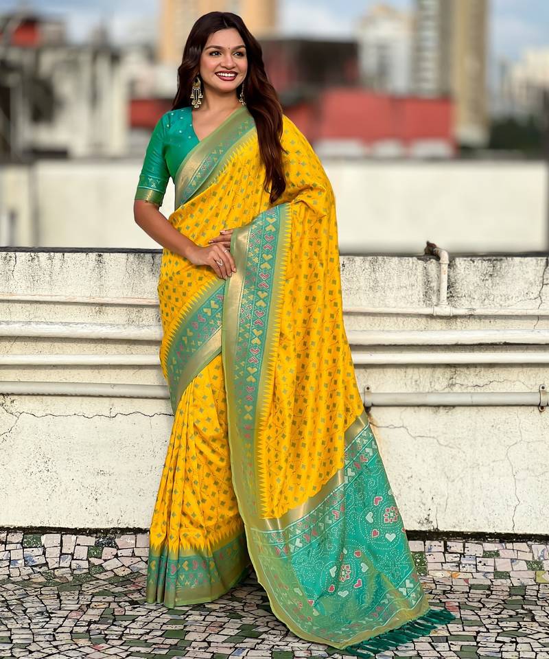 | Product Name | Patola Silk Ikkat Zari Weaving Saree With Contrast Blouse Piece | |