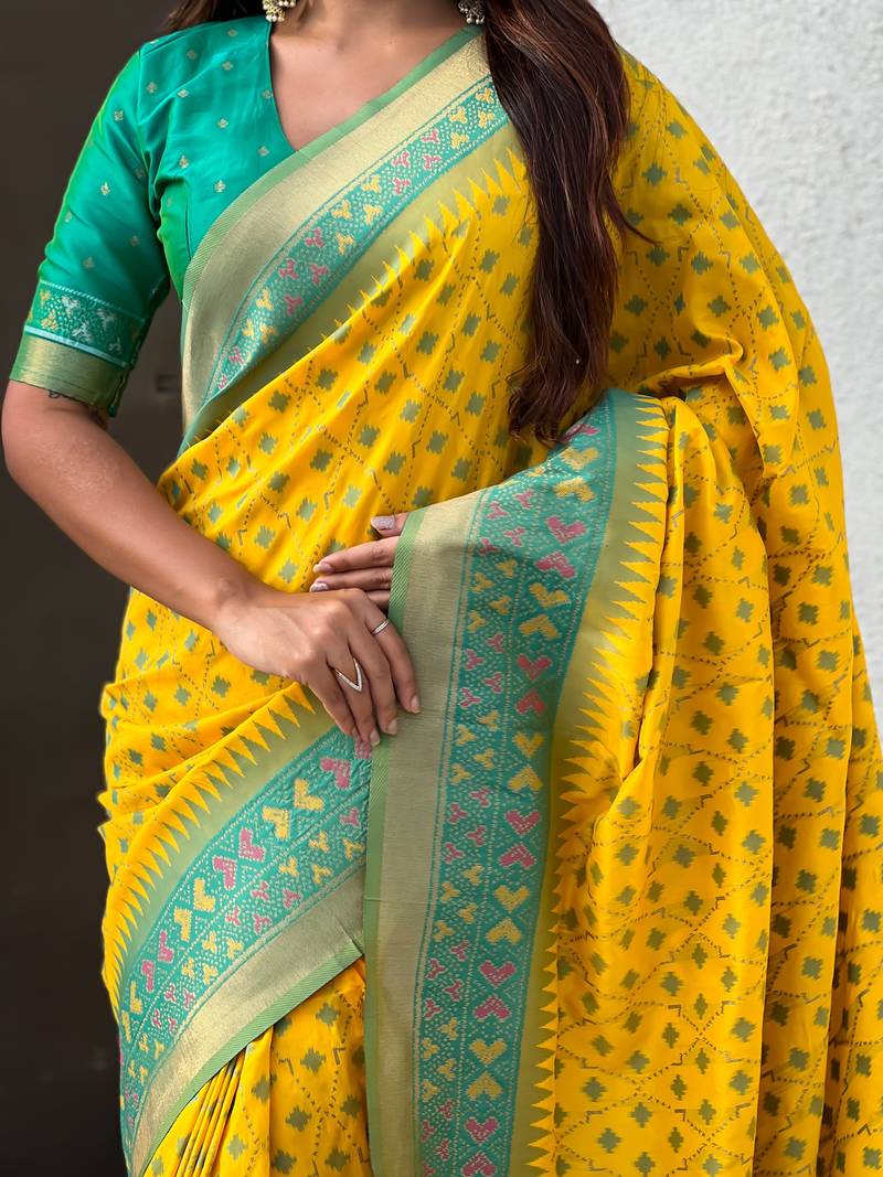 Patola silk ikkat zari weaving saree with contrast blouse piece