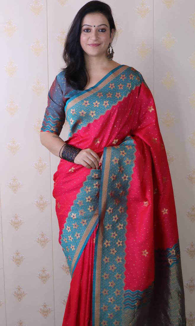 | Product Name | Pink Banarasi Silk Zari Weaving Saree With Contrast Blouse Piece | |