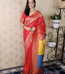 Pink banarasi silk zari weaving saree with matching blouse piece