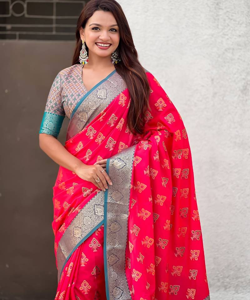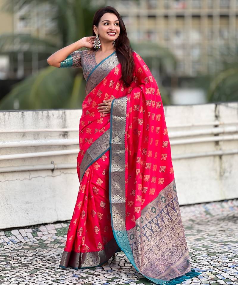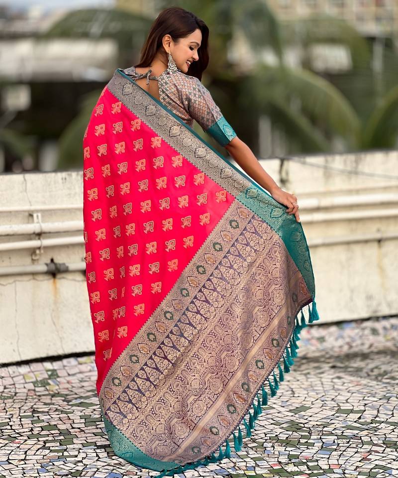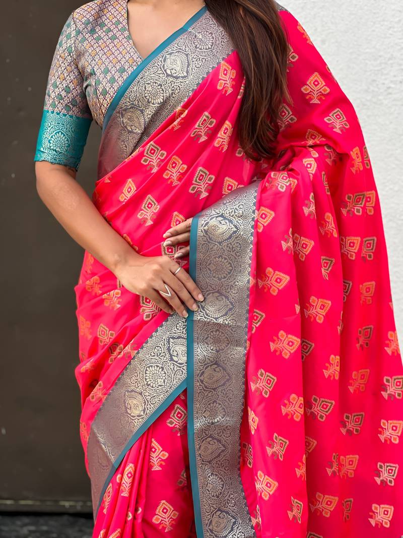 Pink patola silk saree meenakari weaves & zari pallu with contrast blouse piece