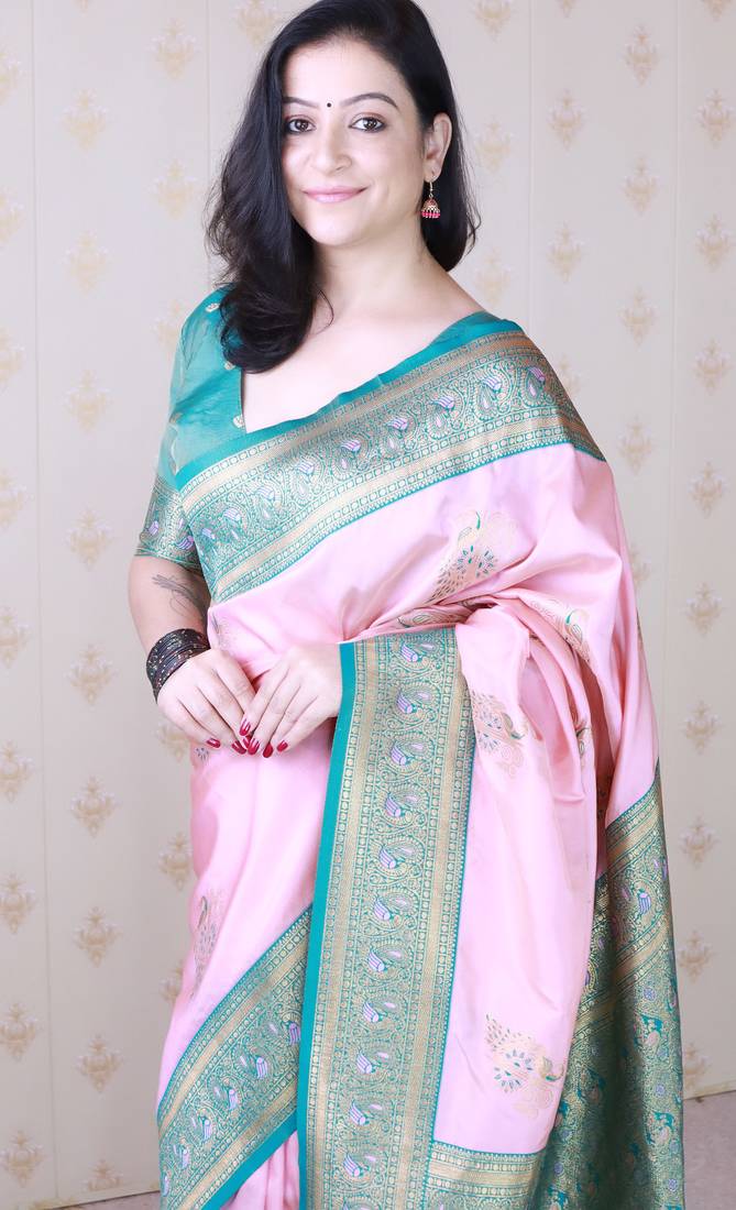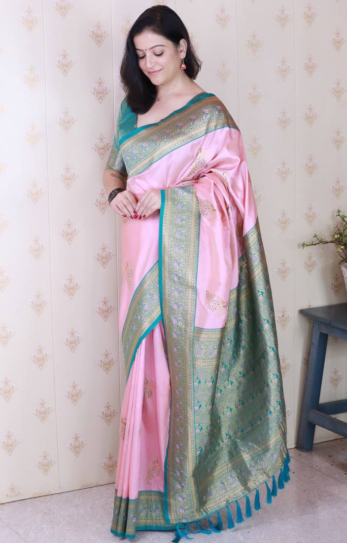 | Product Name | Pink Soft Silk Zari Weaving Saree With Contrast Blouse Piece | |
