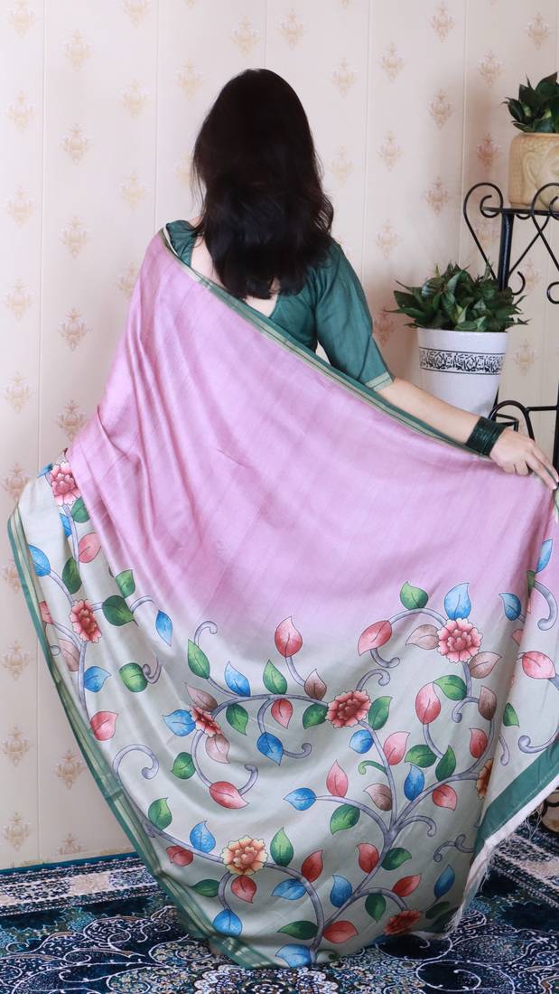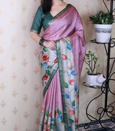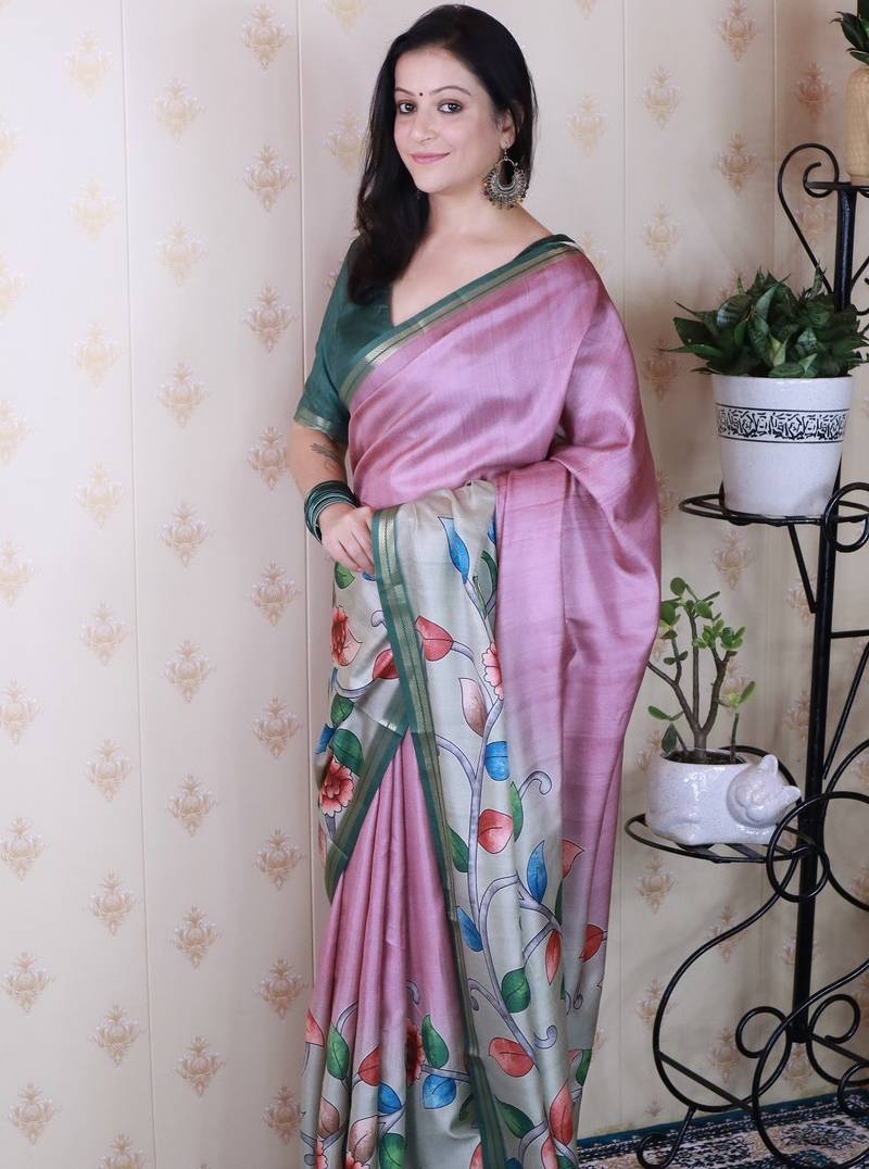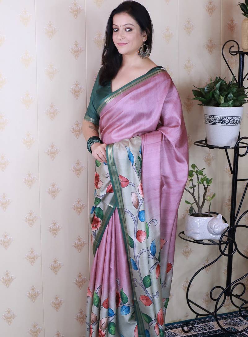 | Product Name | Pink Tussar Silk Kalamkari Print Zari Woven Border Saree With Contrast Blouse Piece\ | |